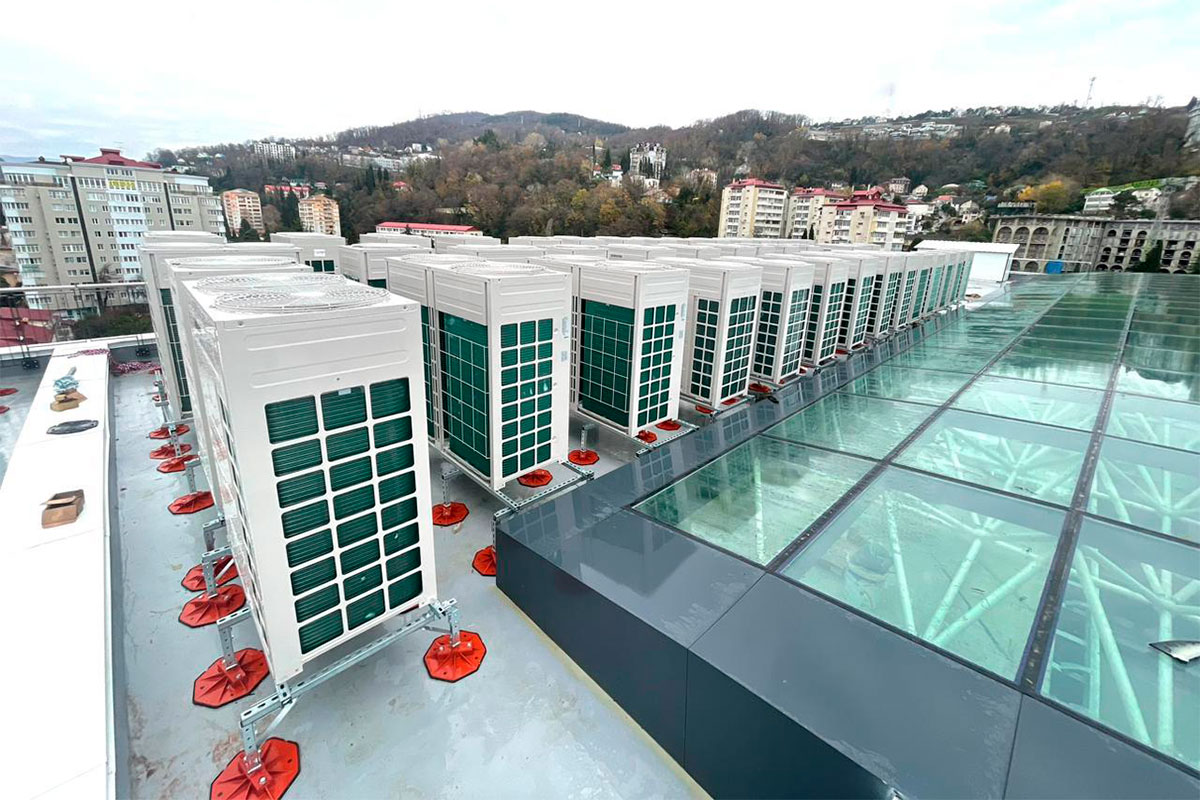 Компания HILST, в рамках проекта по реконструкции легендарных отелей и пансионатов города Сочи, разработала решение для размещения инженерного оборудования системы кондиционирования и общеобменной вентиляции на поверхности кровли гостиницы Кристалл.